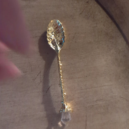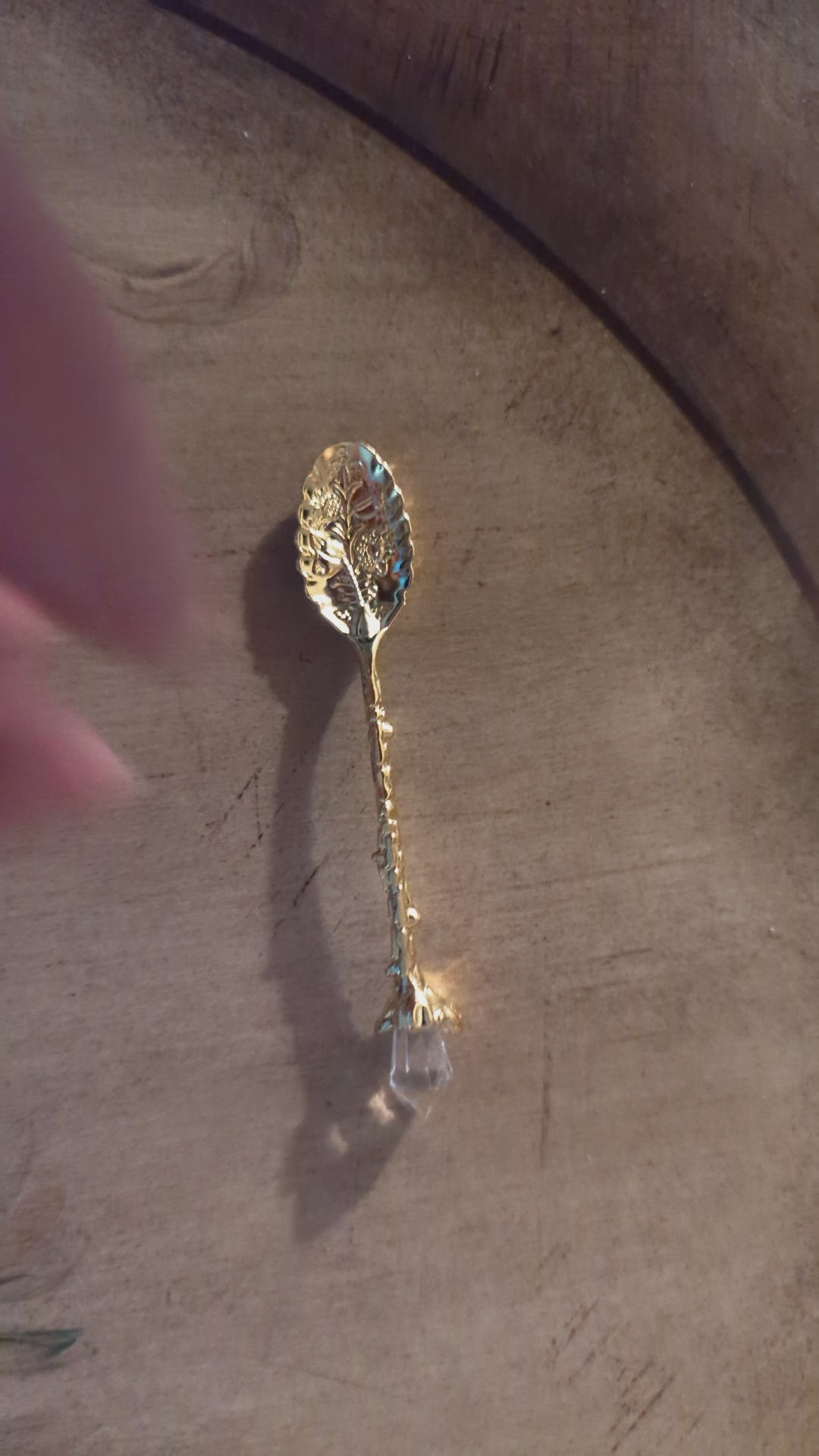 Bring a touch of magic to your coffee and tea rituals with this set of three ornate spoons. Each piece is carefully designed with a floral engraved bowl, a delicate branch-style handle, and a sparkling crystal accent that catches the light.
